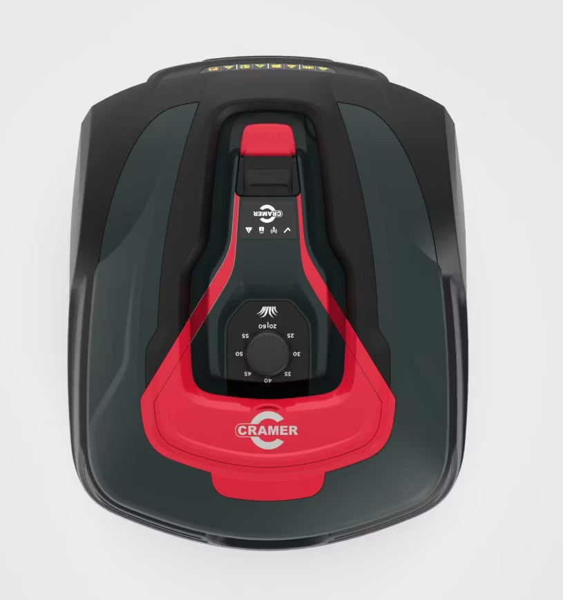 RM1000 är en helautomatisk robotgräsklippare designad för medelstora trädgårdar på upp till 1000 m². Med full 2G/4G-anslutning via Cramer Connect-appen kan du enkelt hantera klippscheman och övervaka robotens status, utan att behöva klippa igen. Designad med säkerhet i åtanke, RM1000 har en integrerad lyftsensor för att automatiskt stoppa knivarna och en kollisionssensor för att känna igen hinder.