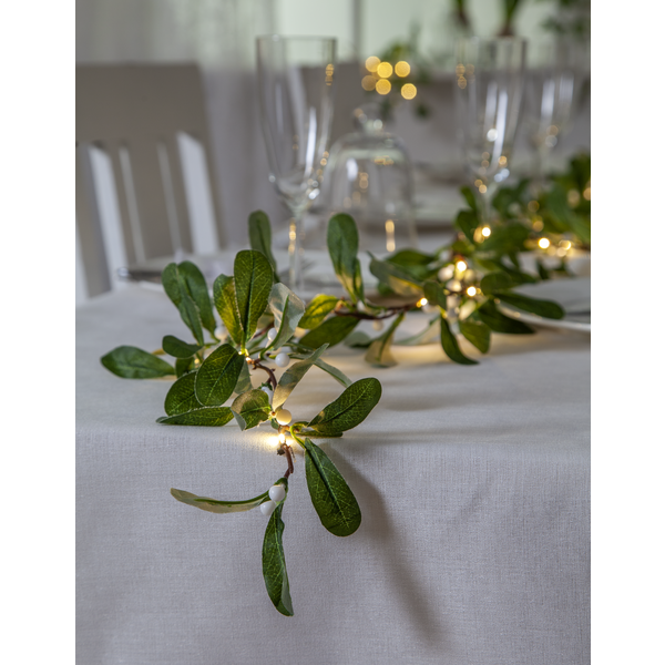 Vacker mistel girlang att dekorera med. Lyser med 20 varmvita dewdrops. Går att lysa upp med timer eller utan.
