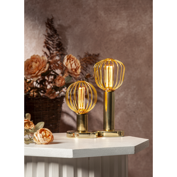 Läcker LED-lampa med guldfärgad metall. Justera ljusstyrkan med hjälp av strömbrytaren då denna ljuskälla har 3-stegsklickdimringsfunktion. Då får du enkelt ett mysigt och varmt sken. Lämpar sig ypperligt för dekorationsbelysning och passar perfekt i våra upphäng, eller lampfötter. Hittar sin självklara plats över såväl soffbord, bardisk som över en matsalsmöbel.