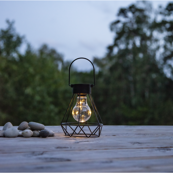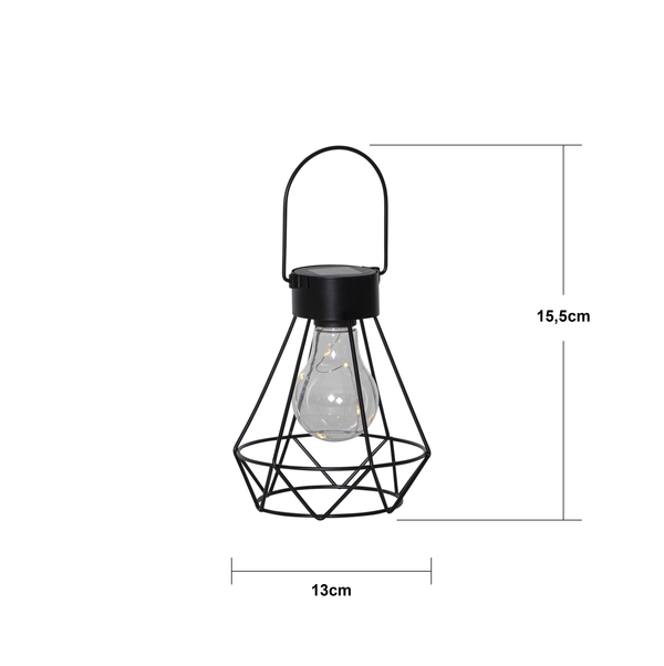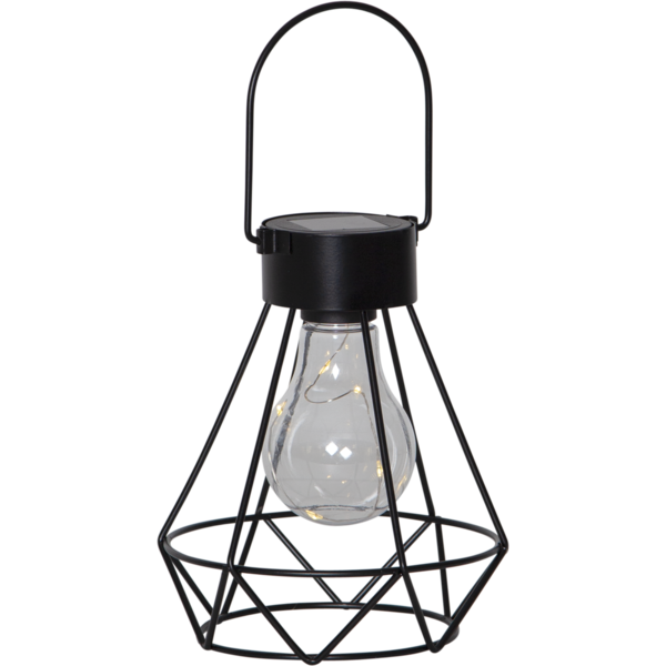 Solcellsdekoration i form av en lykta som kan användas både hängande och stående på bord. En fin dekoration för trädgården eller balkongen